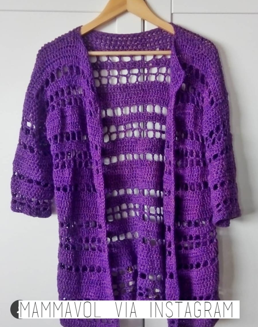 Ananda Van Dyk Russ made this poncho in Eco-Fusion, Violet: